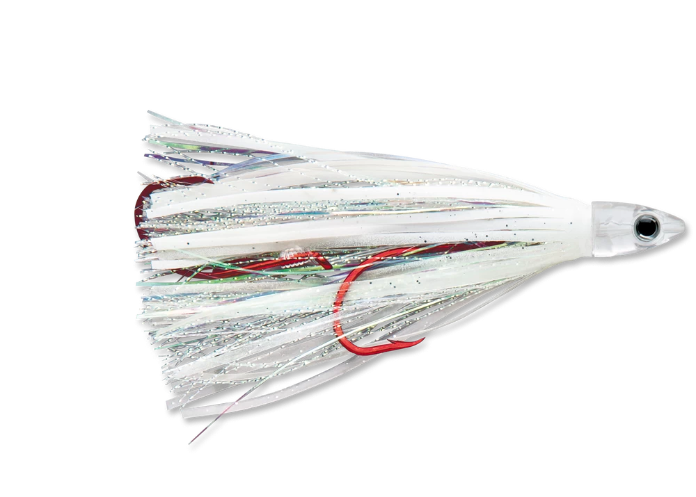 - Pre-rigged with 36 inches of Sufix 50 pound monofilament and two 4/0 VMC Octopus hooks.