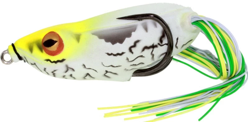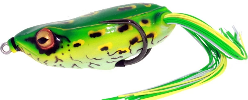 Comes pre-rigged with a 6/0 Black Nickel Double Frog Hook and is available in 8 colors.